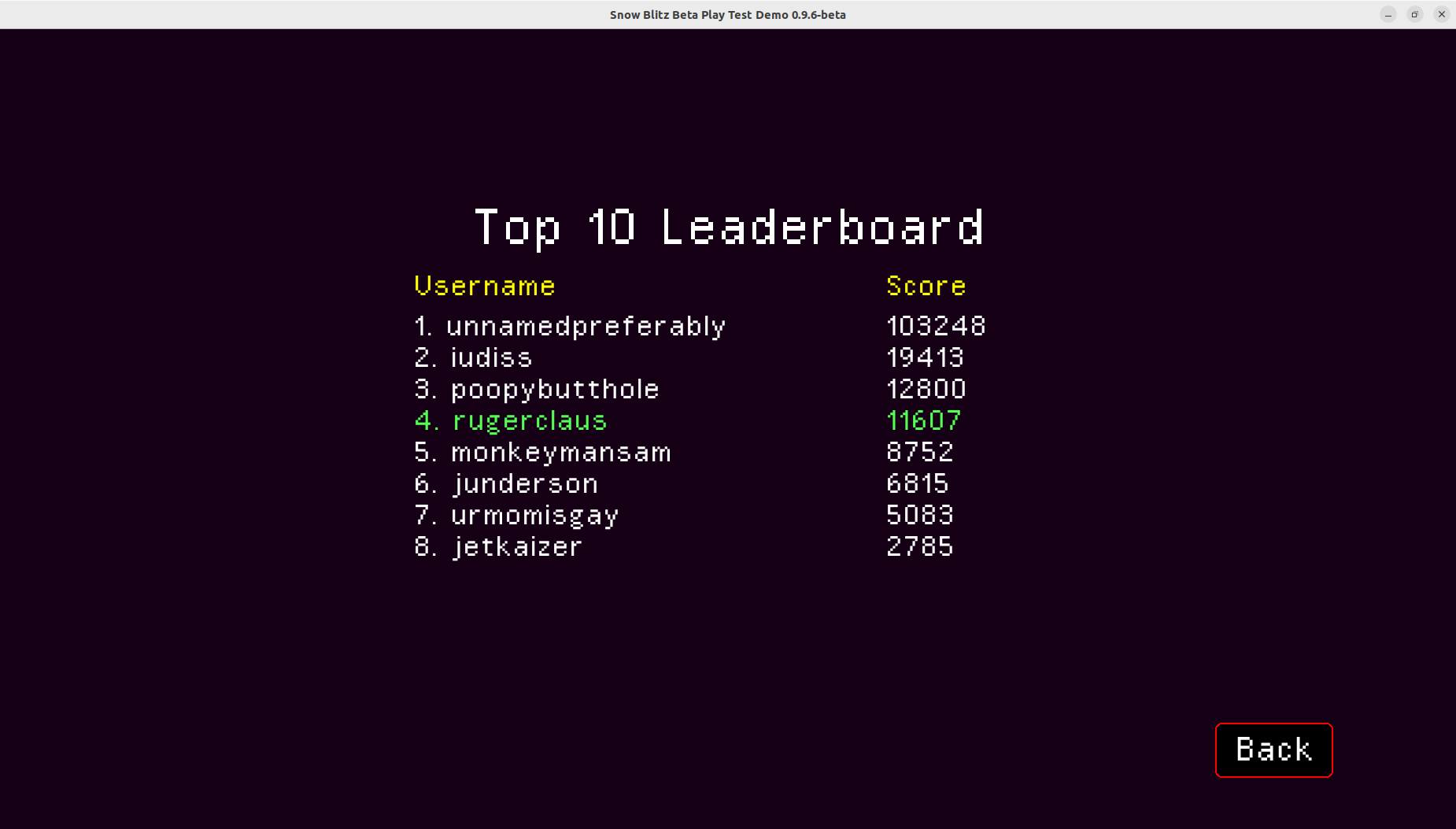 5.1. Otherwise open a terminal in the directory of the game, and run ./SnowBlitz_XXXX (X refers to what comes after SnowBlitz in this build, you should just be able to type S and press TAB.)
